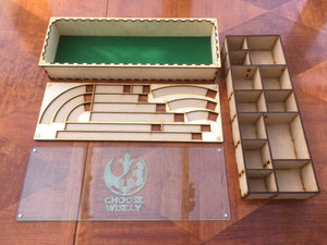 X-wing 2.0 compatible magnetic stacking boxes/trays. Customisable engraved lids.